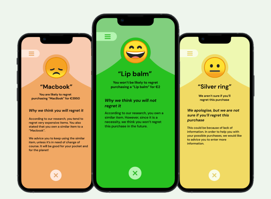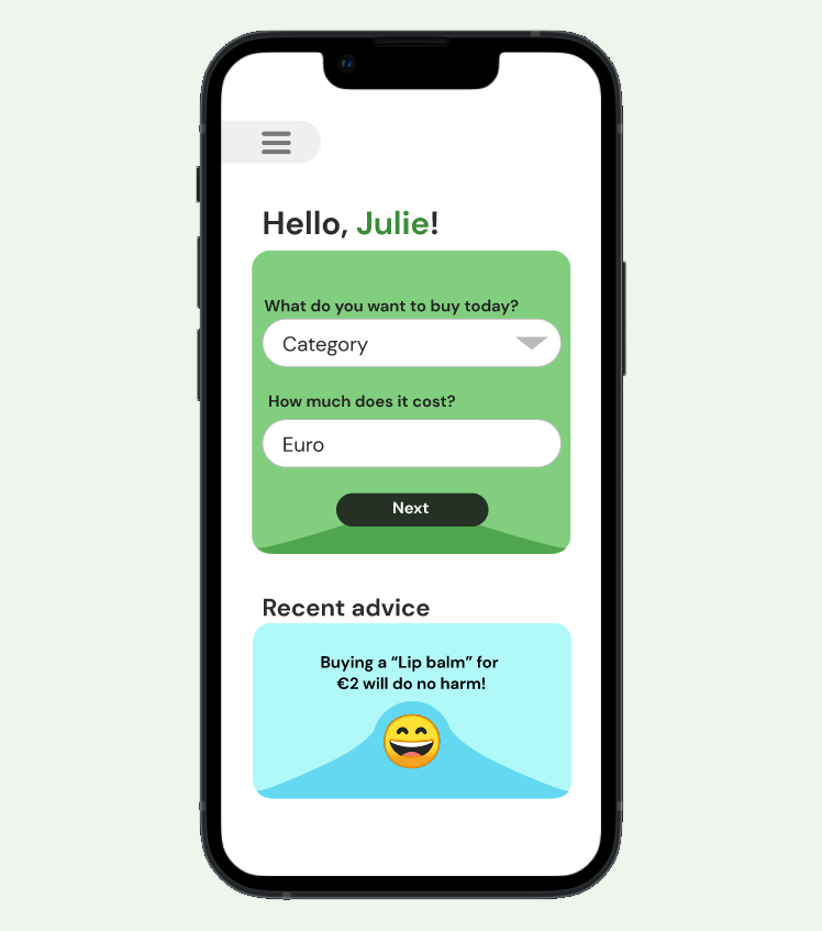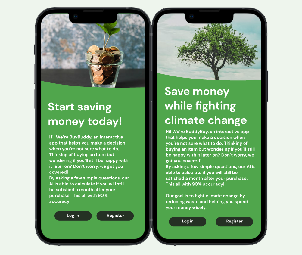 BuyBuddy is een app waarin de gebruiker financieel advies ontvangt. Indien de gebruiker een aankoop wil doen maar niet zeker weet of dit een verstandige aankoop is, helpt de app bij het maken van een keus. Op basis van bestaande data vormt de app een advies waarna de data versterkt wordt als het blijkt dat de gebruiker het advies nuttig heeft gevonden.
